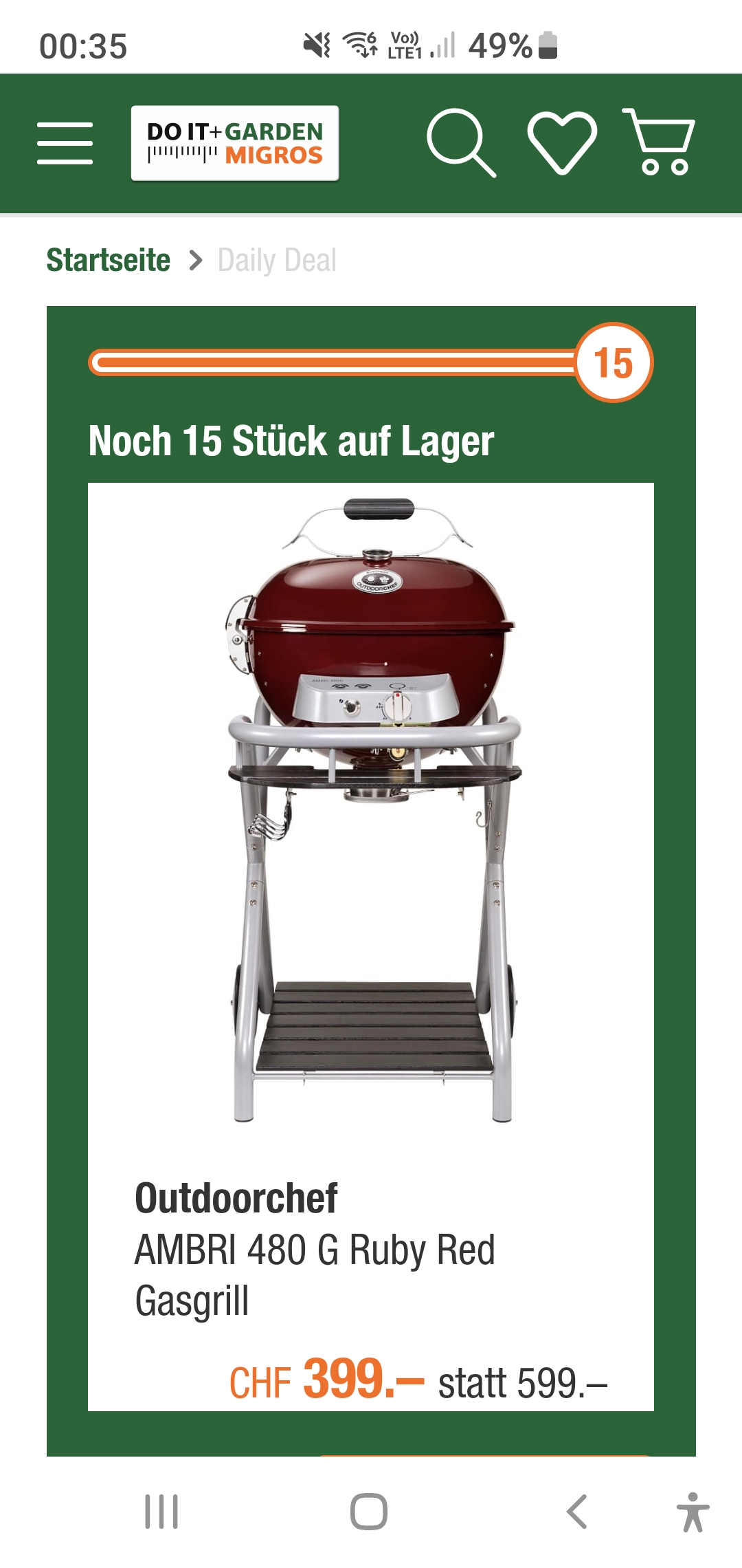 Den Outdoorchef gibt's bei Hornbach im Rausverkauf für 279 Franken. Evtl. Lokal (Sirnach)