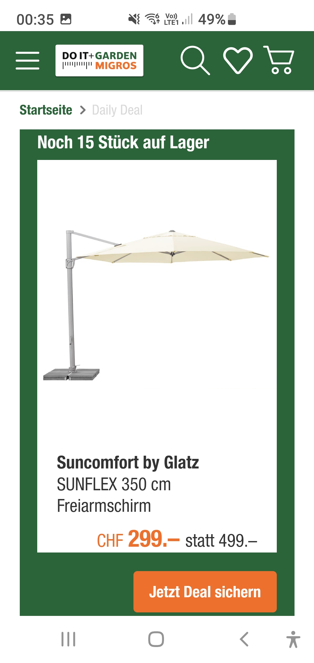 Suncomfort Sonnenschirm by Glatz SUNFLEX 350 cm für CHF 387.-*
