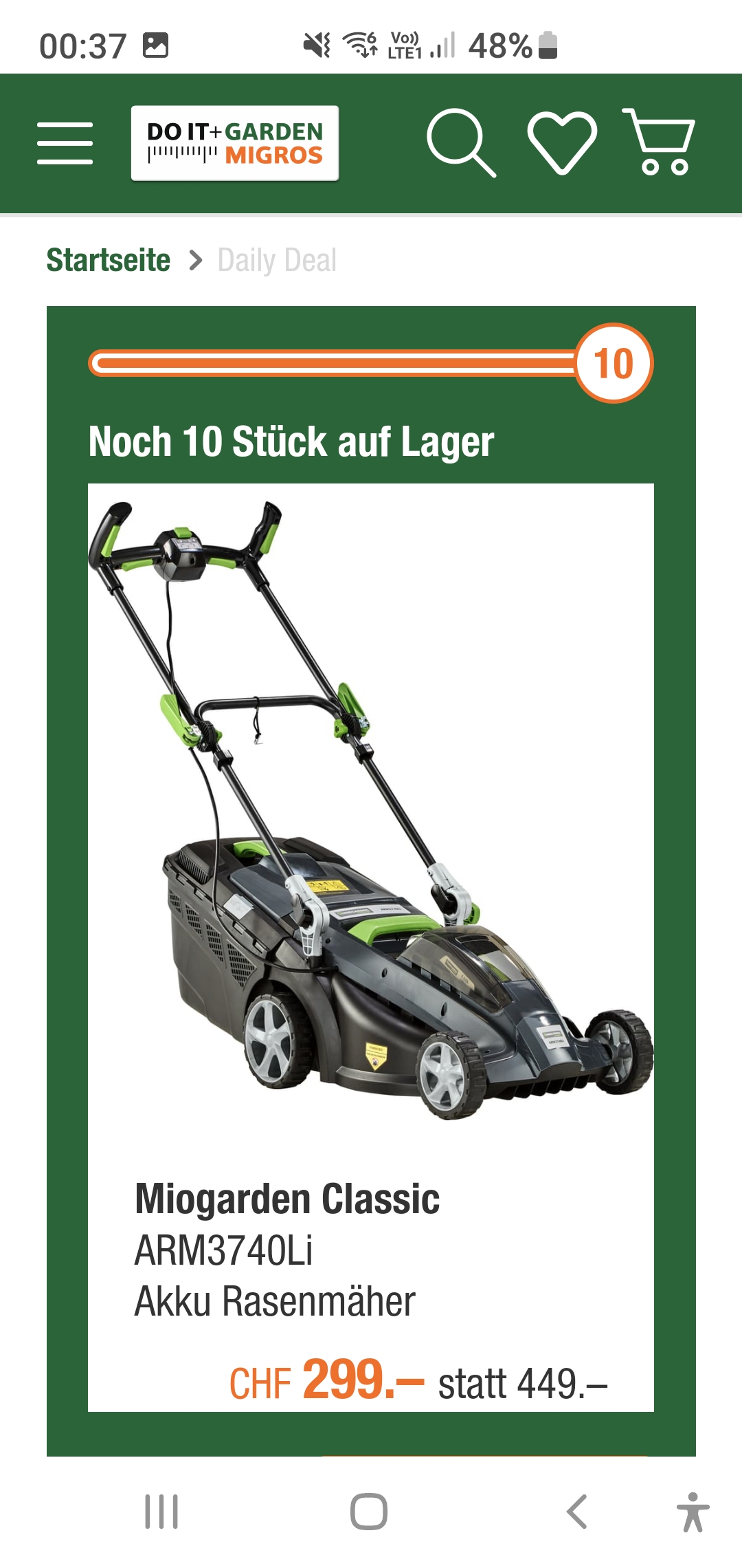 Miogarden Classic ARM3740Li Akku-Rasenmäher für CHF 289.-*
