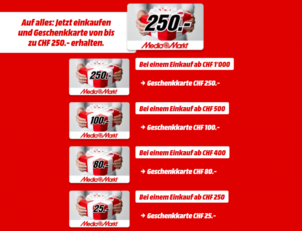 Für jeden Einkauf erhält man eine Geschenkkarte obendrauf.