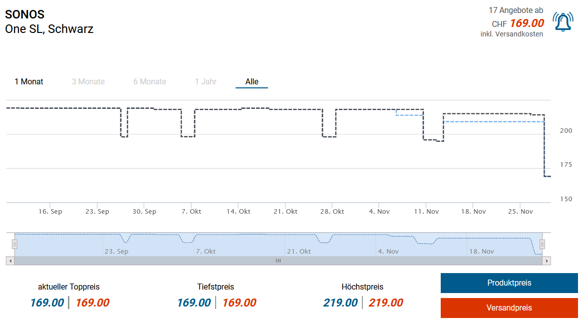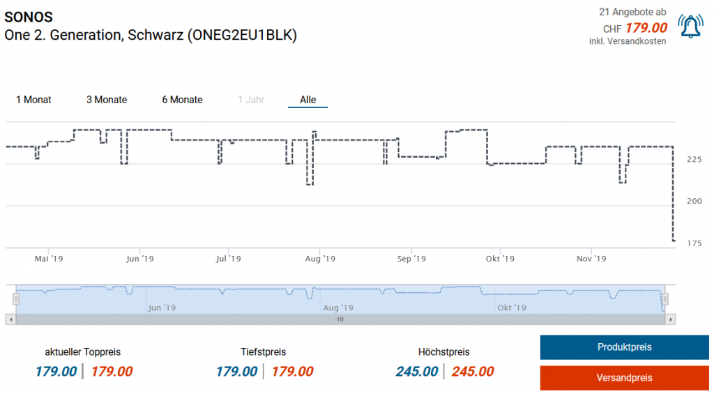 Sonos One mit Versand in die Schweiz für ~169.- CHF, zweitbester Preis 179.- CHF