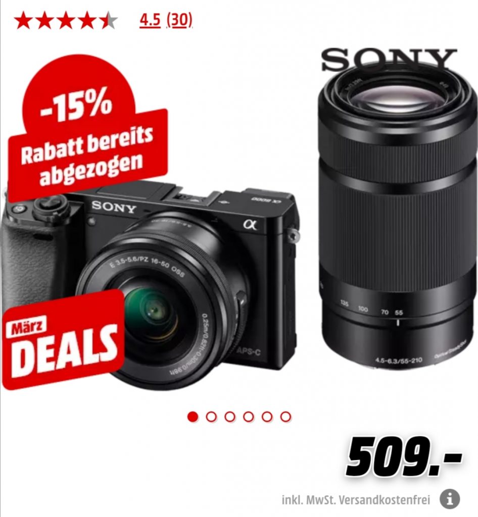Sony Alpha 6000 mit 2 Objektiven bei Media Markt zum Bestpreis.