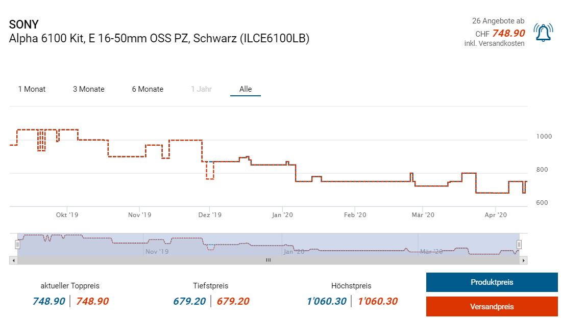 Wer das bessere Model A6400 im Kit möchte, bekommt es bei Mediamarkt gerade für CHF 849.15 (nur noch 2 verfügbar) oder ab 21.04. bei Melectronics für CHF 849.00.