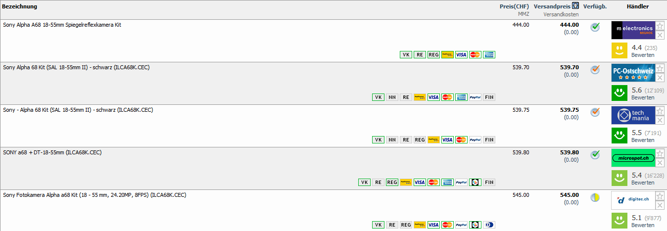 Bei melectronics gibt es diese Woche die SONY Alpha 68 als Kit mit 18-55mm Objektiv für 444.- CHF.
