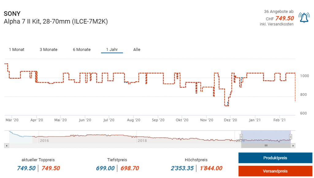 Bei melectronics gibts zurzeit die Systemkamera Sony Alpha 7 II mit einem 28-70mm Objektiv zum Aktionspreis von CHF 749.50. Wenn ihr euch dort noch zum Newsletter anmeldet könnt ihr den 10 Franken Gutschein einlösen. Laut Preispirat-Recherche lag der Bestpreis bei knapp 680 Franken am Black Friday bei Fust.