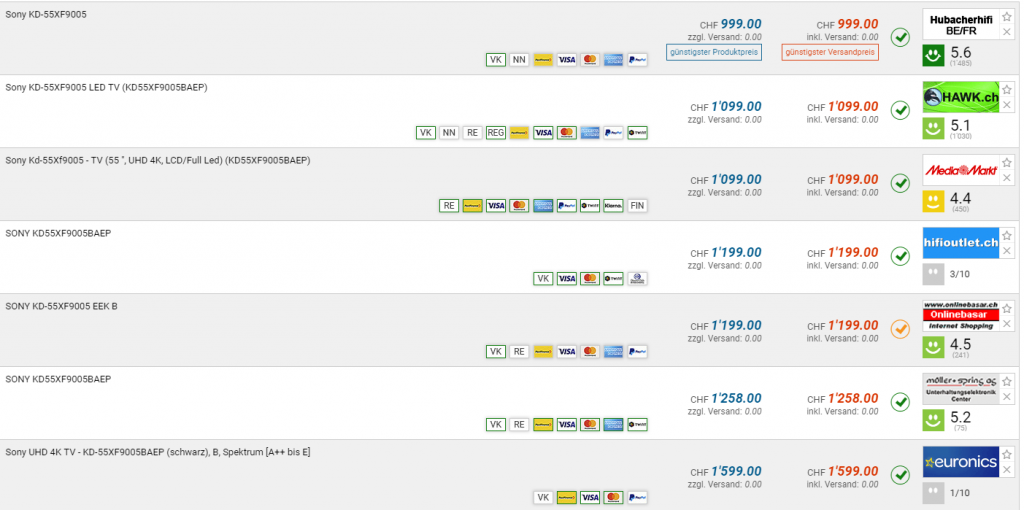 Bei Interdiscount gibt’s gerade den SONY Bravia KD-55XF9005, 55″ 4K UHD Smart TV für CHF 879.90 was neuer Bestpreis ist. Vormaliger Bestpreis betrug CHF 891.65 Zweitbester Preis im Moment laut toppreise bei CHF 999.-