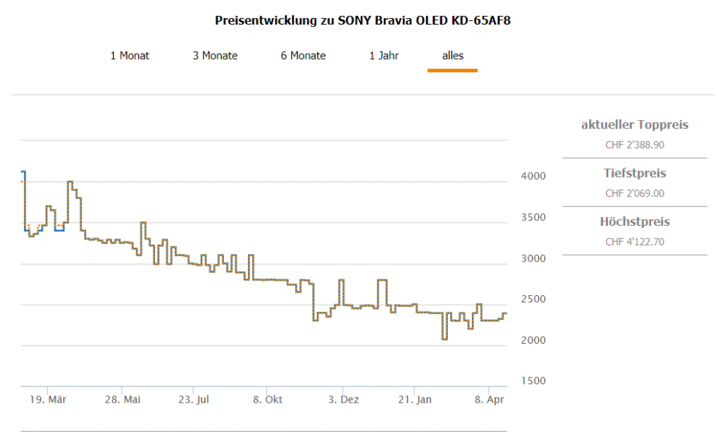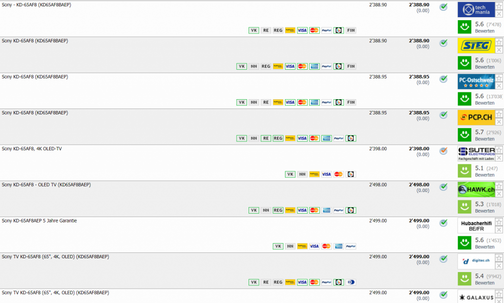 Heute gibt’s bei Interdiscount den SONY Bravia KD-65AF8BAEP, 65″ 4K UHD Smart TV für CHF 1’999.90 Bisheriger Bestpreis war bei CHF 2’069.- Zweitbester Preis im Moment beträgt CHF 2’388.90