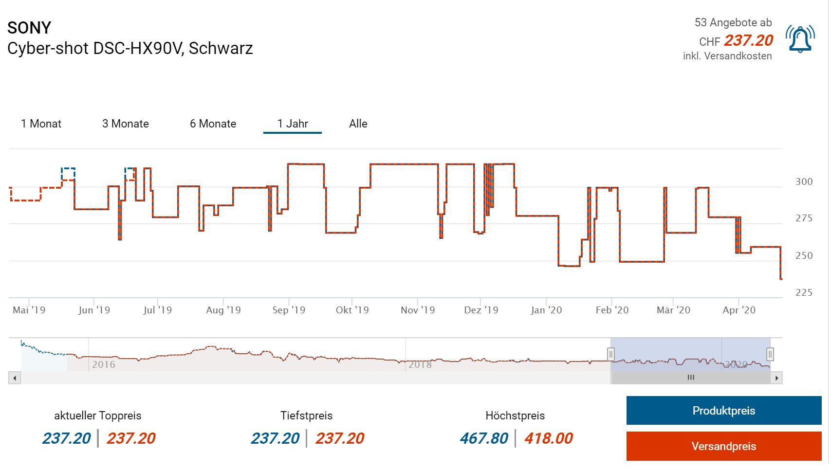 Mit CHF 237.20 gibt es diese Digitalkamera von Sony aktuell zum Bestpreis und historischem Tiefstpreis (gem. toppreise.ch). Zweitbester Preis: CHF 279.-.