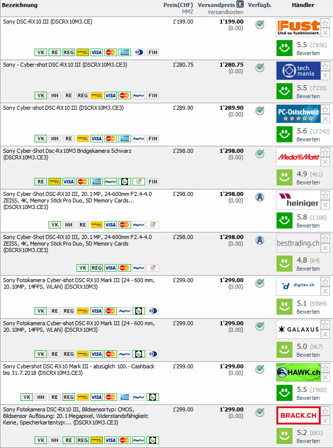 Bei Fust gibt es aktuell die SONY Cyber-shot DSC-RX10 III für 1199.- CHF.