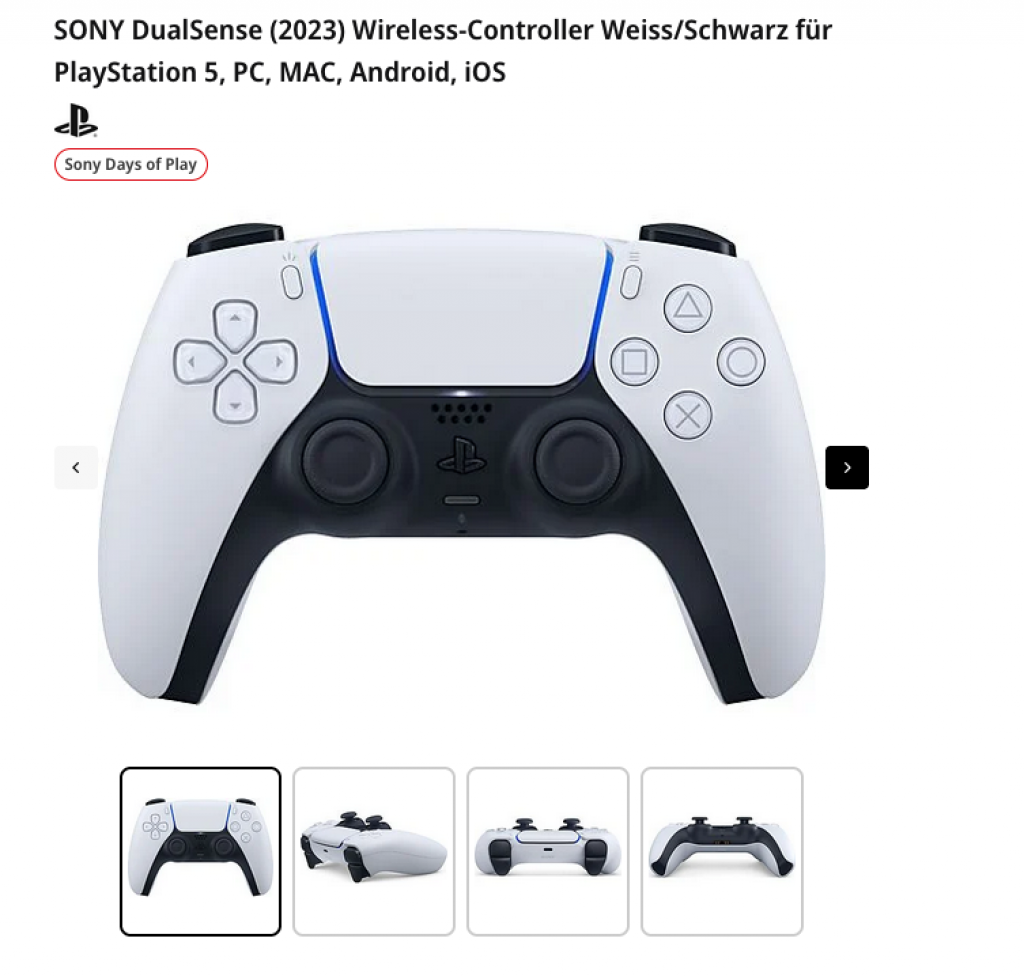 Bei Mediamarkt gibts den SONY DualSense (2023) Wireless-Controller Weiss/Schwarz für PlayStation 5, PC, MAC, Android, iOS wieder zu einem guten Preis (Days of Play), sofern man ihn abholt, ansonsten kommen ca. noch CHF 6.- Versandgebühren dazu.