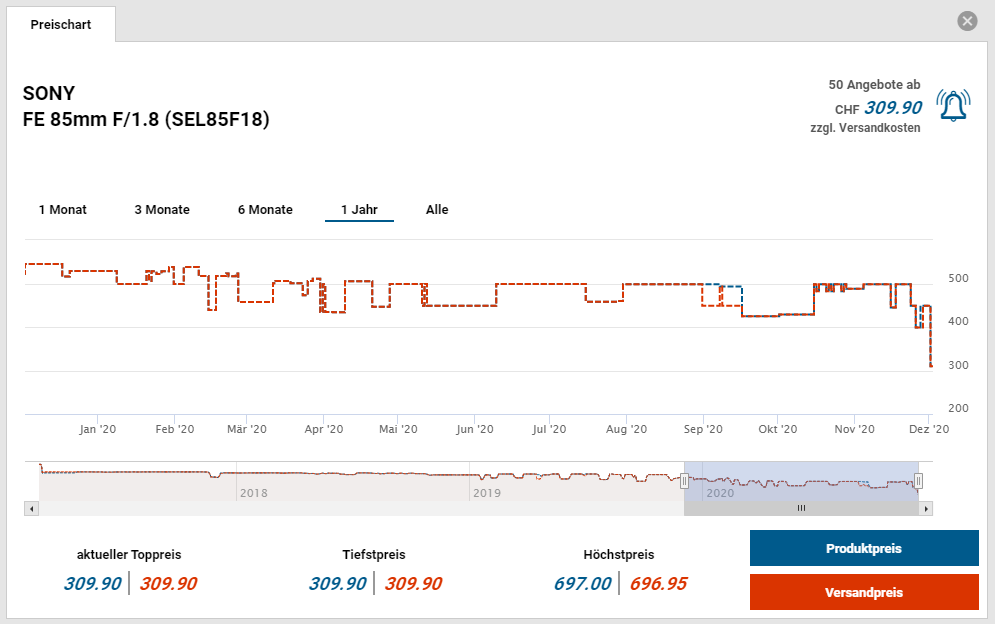 Neuer Bestpreis laut Toppreise für das Sony Vollformatobjektiv.