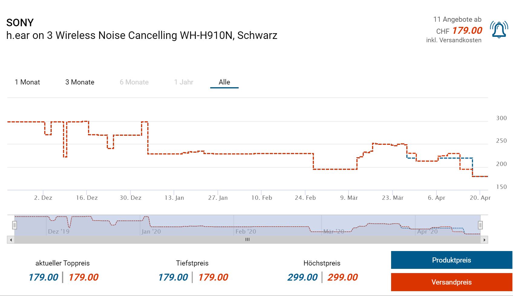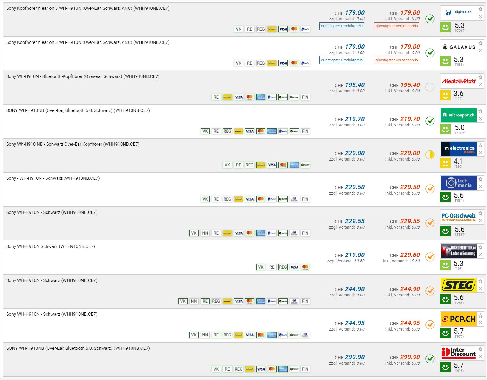 Momentan gibts den Sony h.ear on 3 WH-H910N in Schwarz bei Digitec zum Tiefstpreis von CHF 179.-. Zweitbester Preis ist CHF 195.40 bei MediaMarkt (ebenfalls eine Aktion).