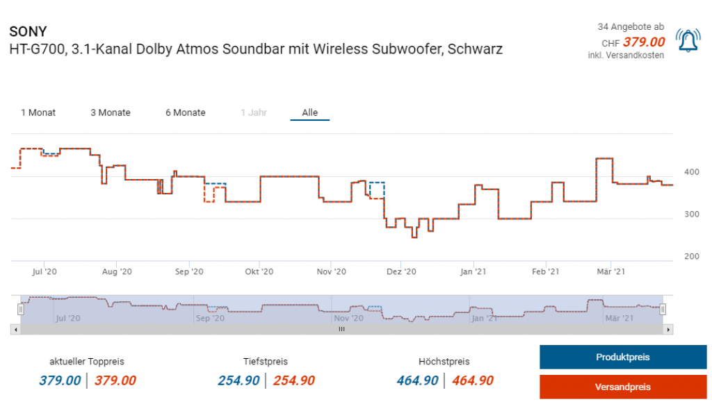 Bei Amazon kann man sich derzeit die 400W starke 3.1 Soundbar Sony HT-G700 mit Dolby-Atmos-Unterstützung zum Aktionspreis von knapp 310 Franken sichern. Laut toppreise starten die Vergleichspreise in der Schweiz bei 379 Franken.