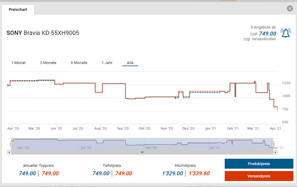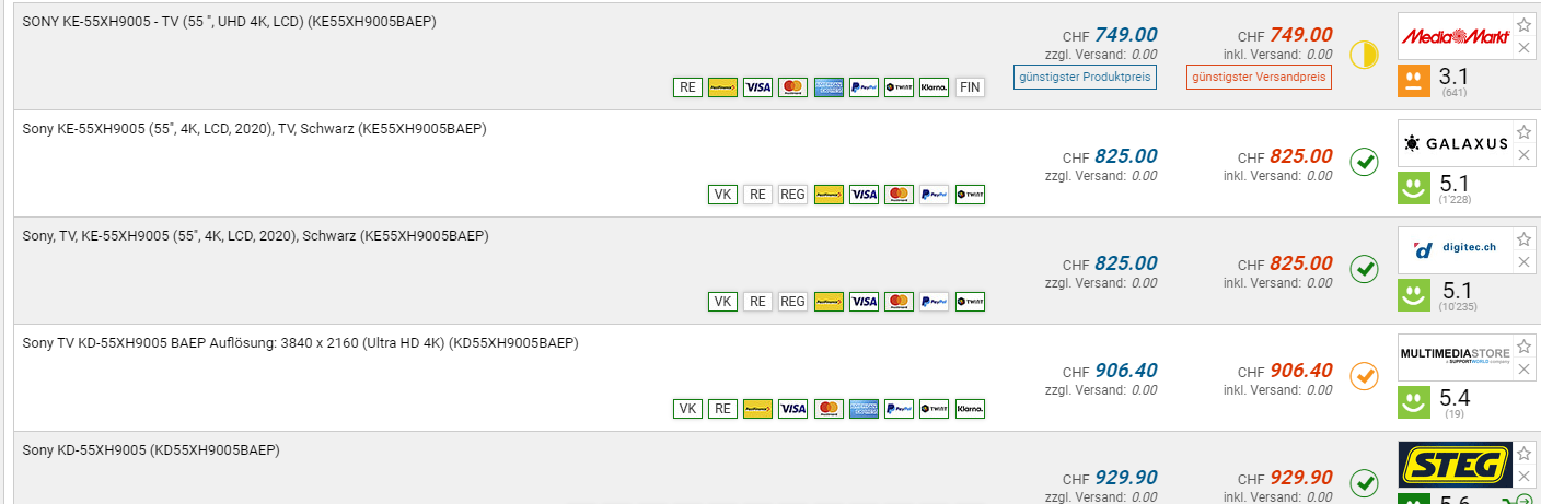 Bei MediaMarkt gibt es den SONY KD-55XH9005 Fernseher für den neuen Bestpreis von CHF 749.-. Der vorherige Bestpreis und auch zweitbeste Preis beträgt CHF 825.-.