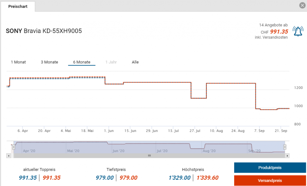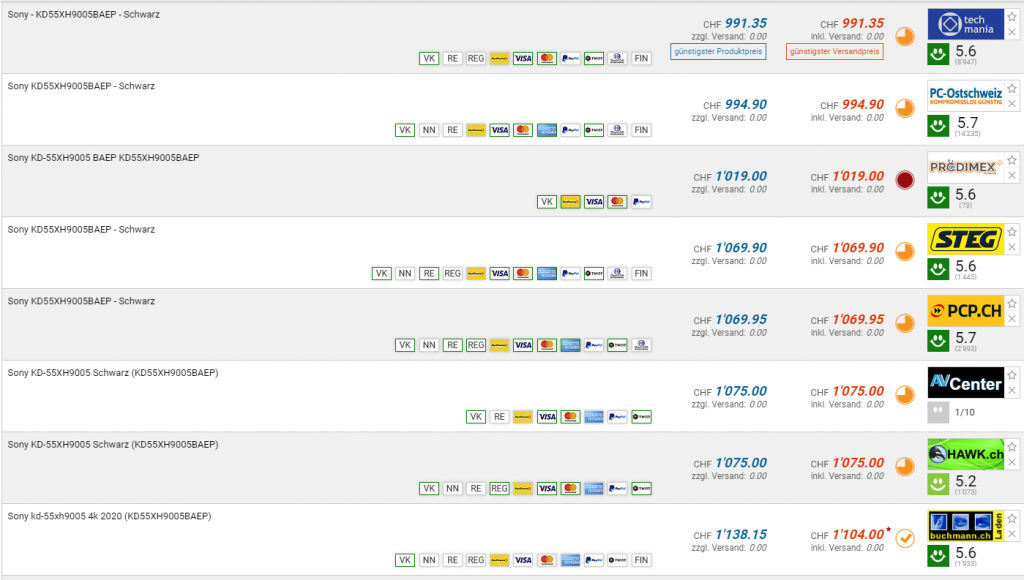 Bei MediaMarkt gibt’s gerade den SONY KD-55XH9005 TV (55 „, UHD 4K, LCD) für CHF 806.65 Laut toppreise ist das der neue Bestpreis, der vorher bei CHF 979.- lag. Zweitbester Preis beträgt CHF 991.35