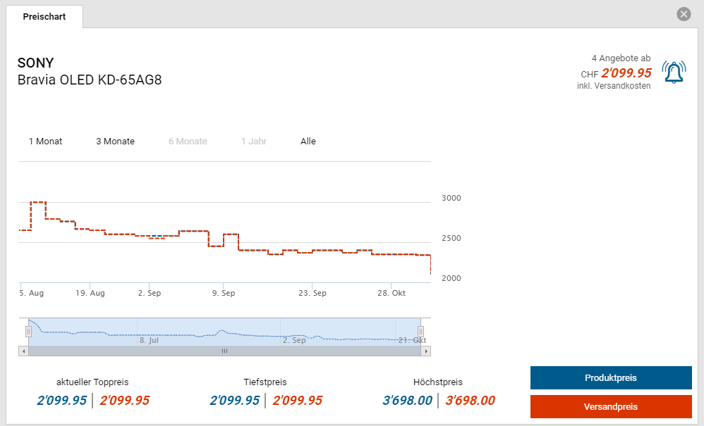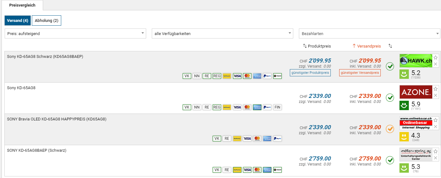 Bei Hawk gibt es den Sony KD-65AG8 Fernseher für den neuen Bestpreis von CHF 2099.95. Der vorherige Bestpreis und auch zweitbeste Preis beträgt CHF 2339.-.