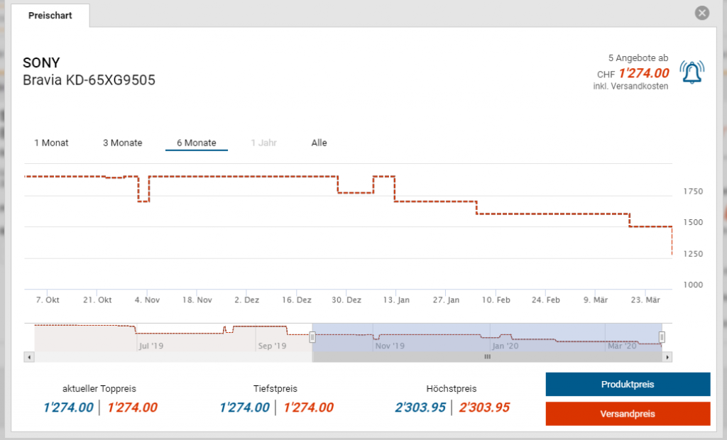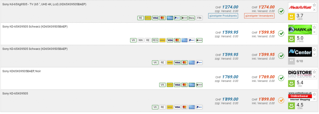 Der vorherige Bestpreis war CHF 1499.- Der zweitbeste Preis beträgt CHF 1599.95.