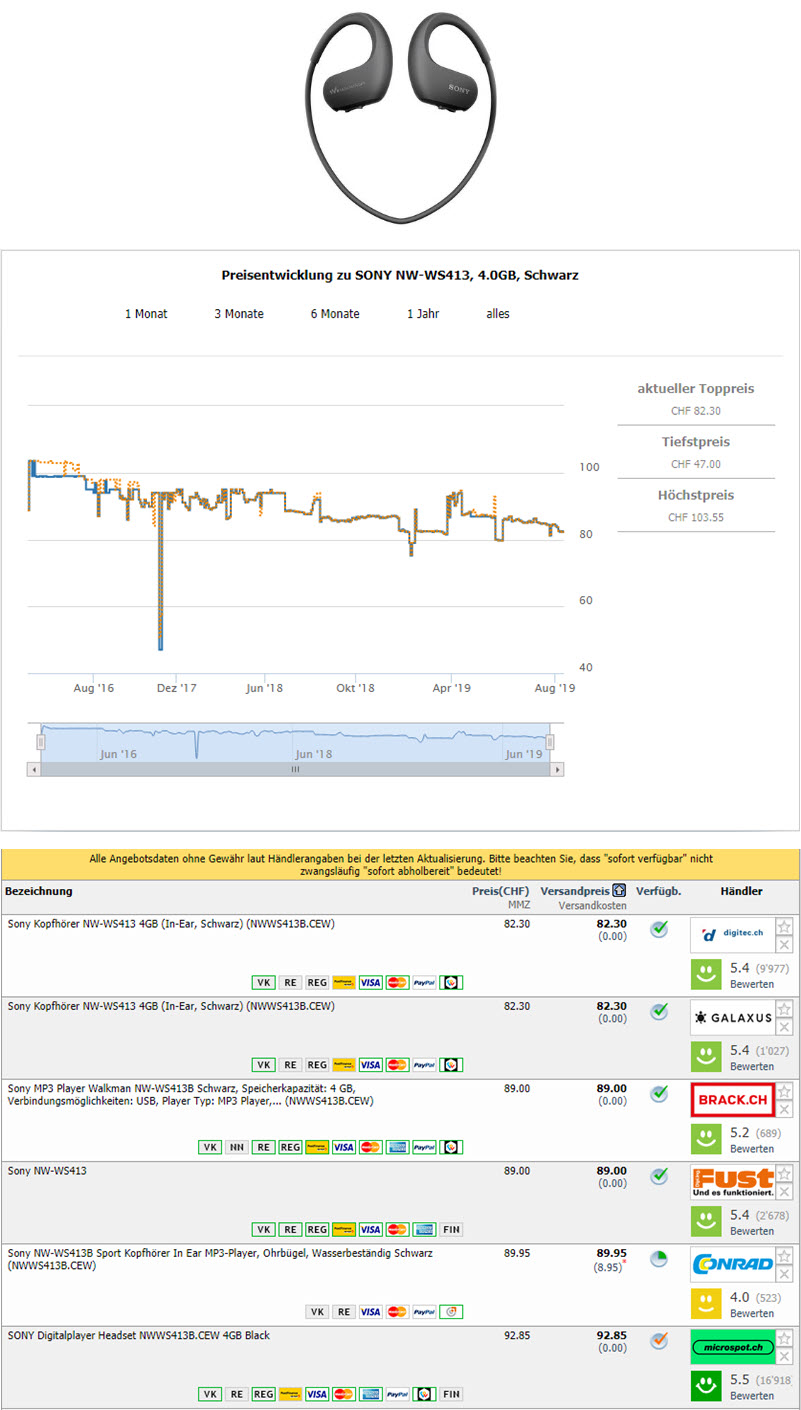 Momentan gibt es bei melectronics den Sony MP3 Player Walkman NW-WS413B Schwarz für CHF 55.40 wenn man sich vorgängig zum Newsletter anmeldet und den zugesandten CHF 10.- Gutscheincode verwendet.