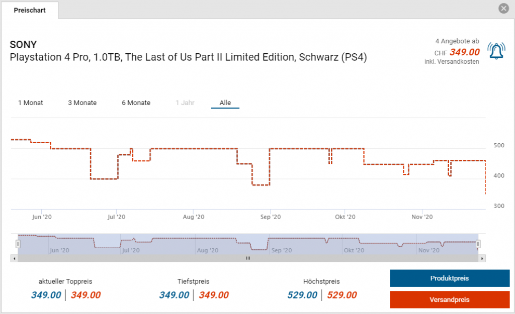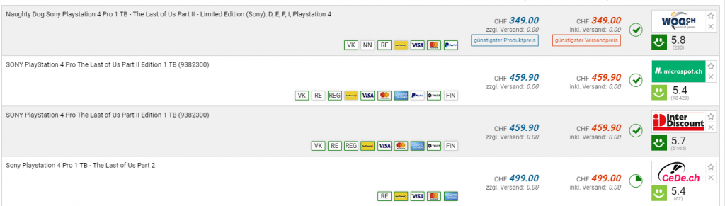 Bei WOG.ch gibt es die Sony Playstation 4 Pro 1 TB – The Last of Us Part II – Limited Edition für den neuen Bestpreis von CHF 349.-. Der vorherige Bestpreis war CHF 379.-. Der zweitbeste Preis beträgt CHF 459.90.