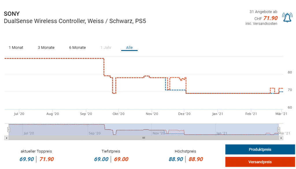 Bei Amazon Spanien gibts derzeit den Dualsense Controller für die PS5 zum Aktionspreis von CHF 62.50 inkl. Lieferung in die Schweiz. Laut toppreise soll der Vergleichspreis bei CHF 71.90 liegen.