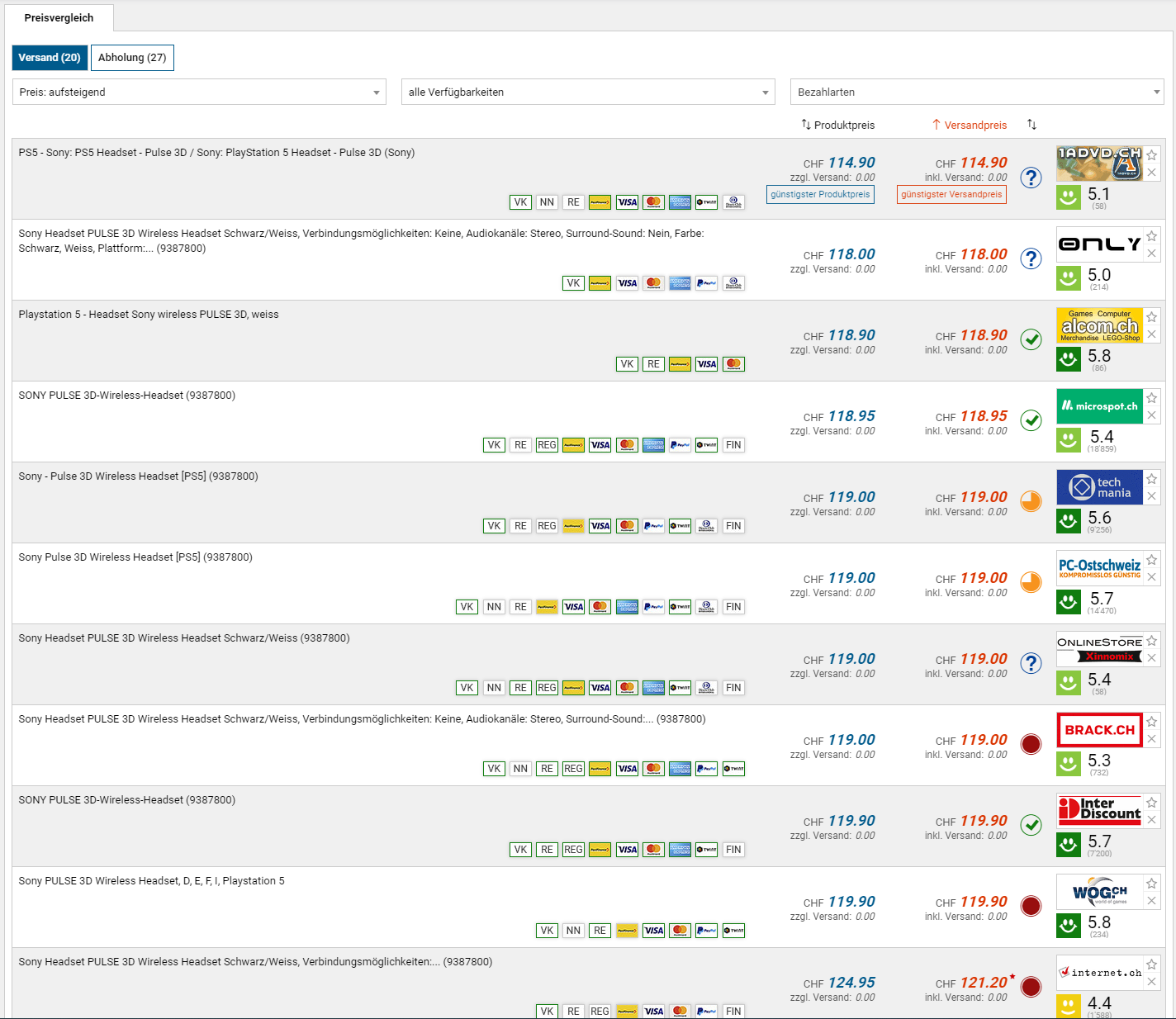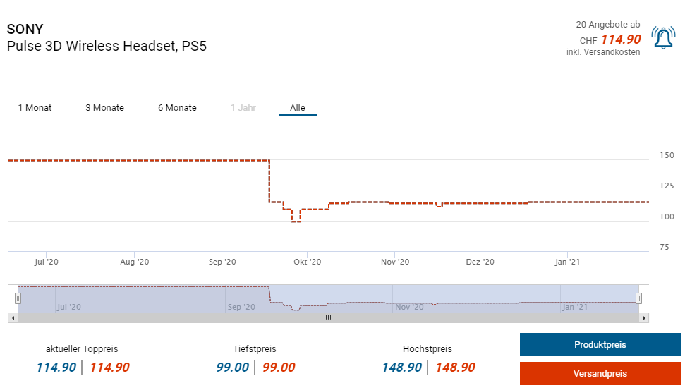Bei Amazon gibts derzeit die Pulse 3D Kopfhörer von Sony zum neuen Bestpreis von knapp 89 Franken. Laut toppreise lag der bisherige Bestpreis bei 99 Franken.