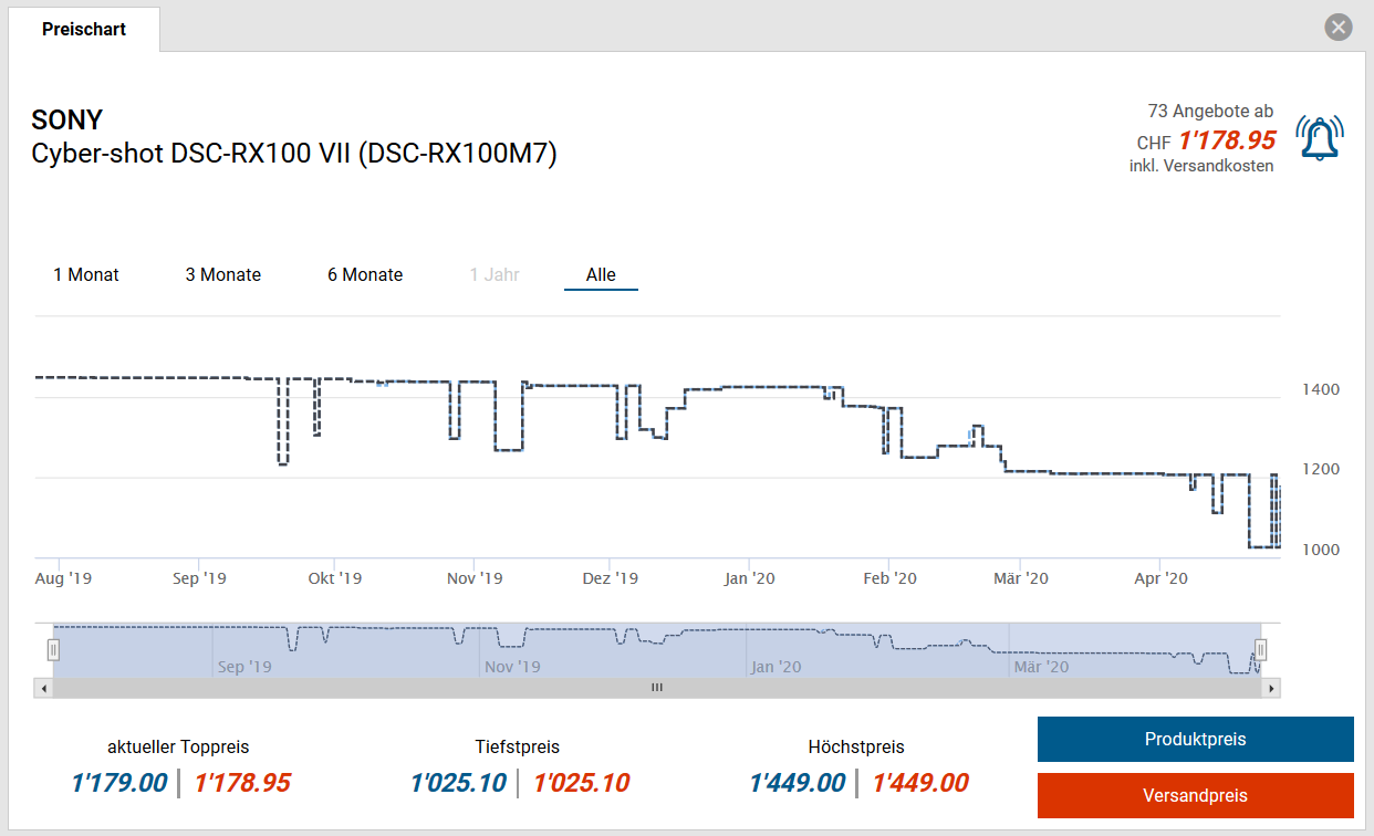 Zweitbester Preis hat momentan Digitec mit 1179.- abzgl. 10% = 1061.10 Fr.