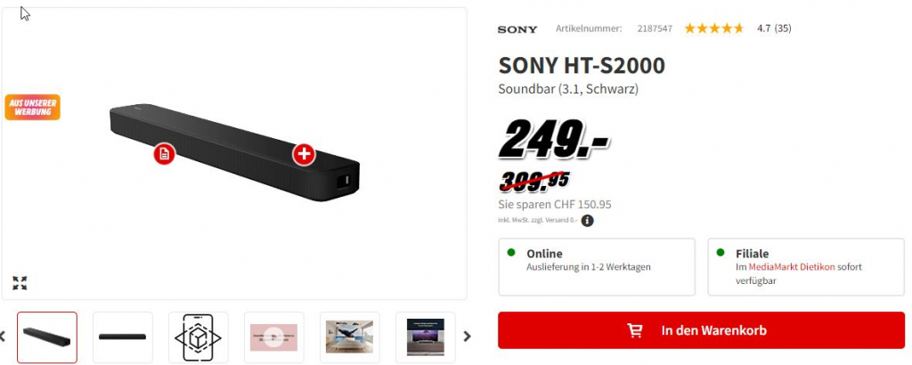 Bei MediaMarkt gibt es z.Z. die Black Week Aktionen. Eine davon ist die Sony HT-S2000.