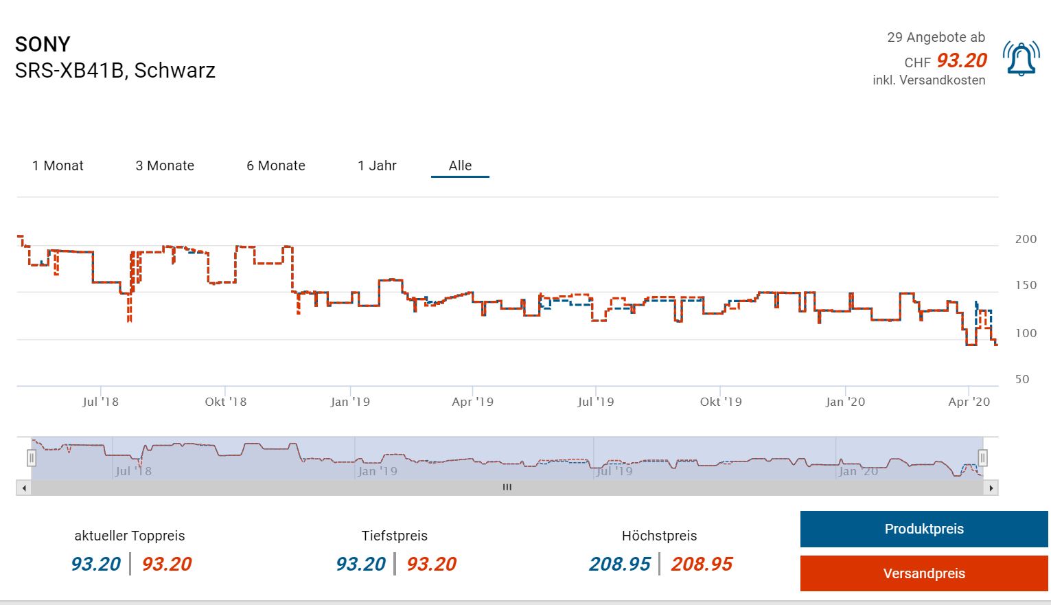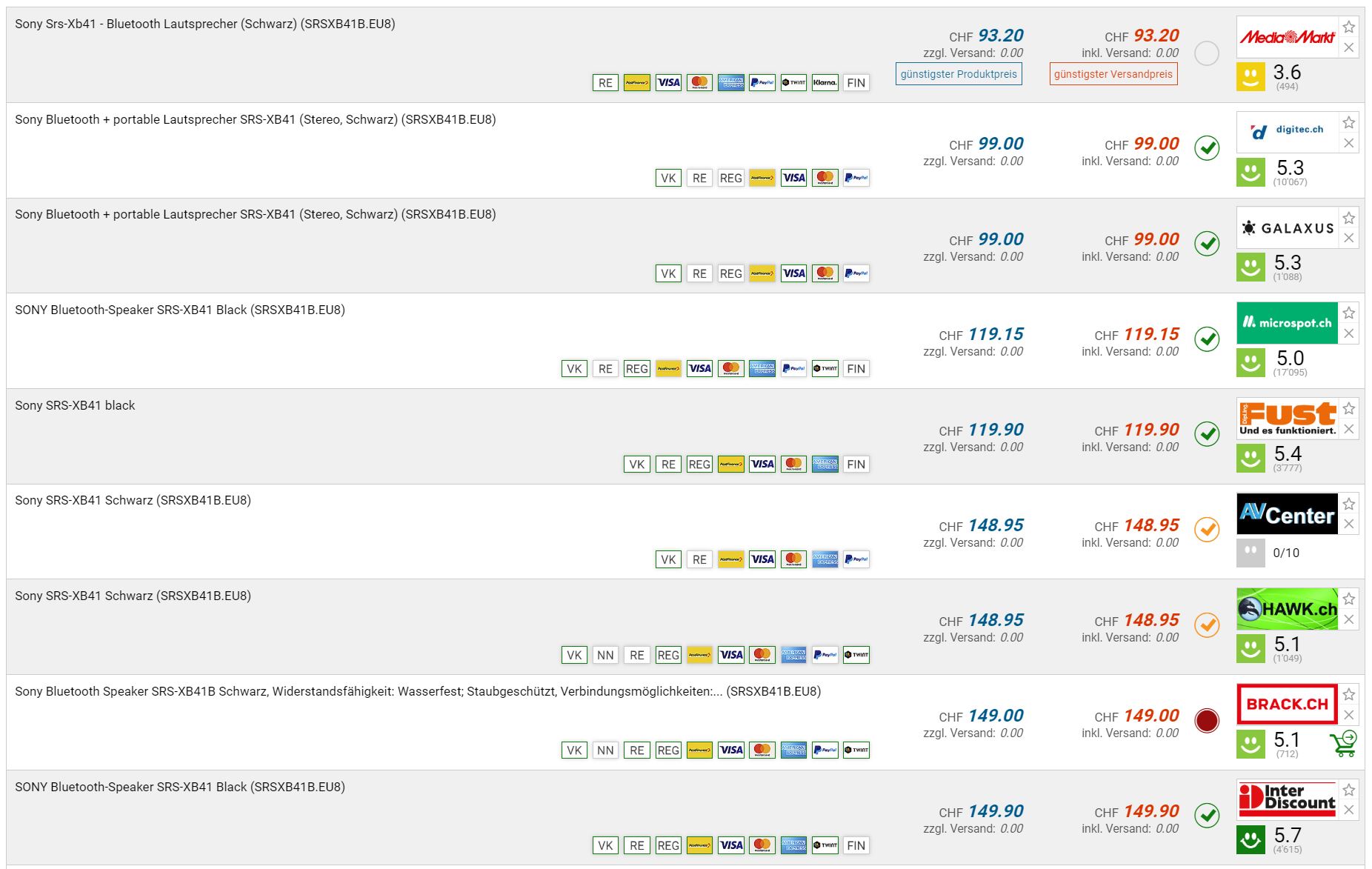 Neuer Bestpreis bei MediaMarkt. CHF 93.20 (ebenfalls historischer Tiefstpreis). Zweitbester Preis liegt bei CHF 99.-