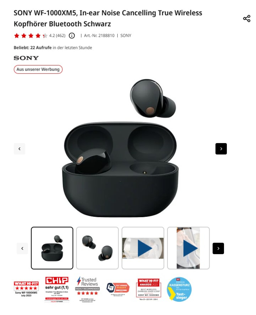- WF-1000Xm5 219.- minus 50.- Rabatt = 159.- SONY WF-1000XM5, In-ear Noise Cancelling True Wireless Kopfhörer Bluetooth Schwarz | MediaMarkt