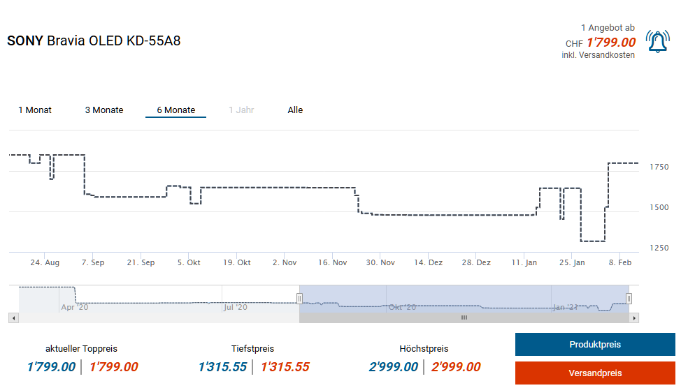 OLED KD-65A8, neuer Bestpreis CHF 1’529.15 (inkl. Code „CONFO“)