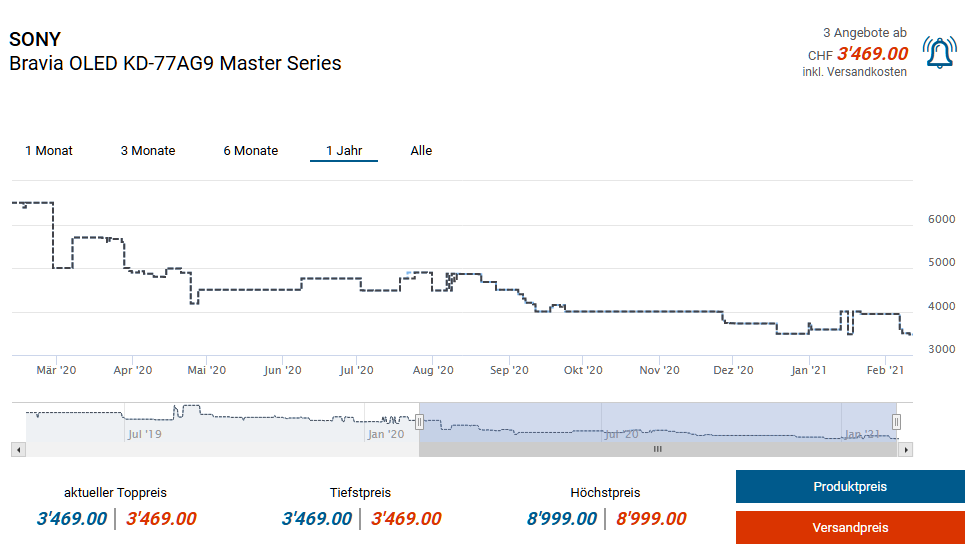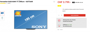 OLED KD-77-AG9, neuer Bestpreis CHF 3’229.15 (inkl. Code „CONFO“)
