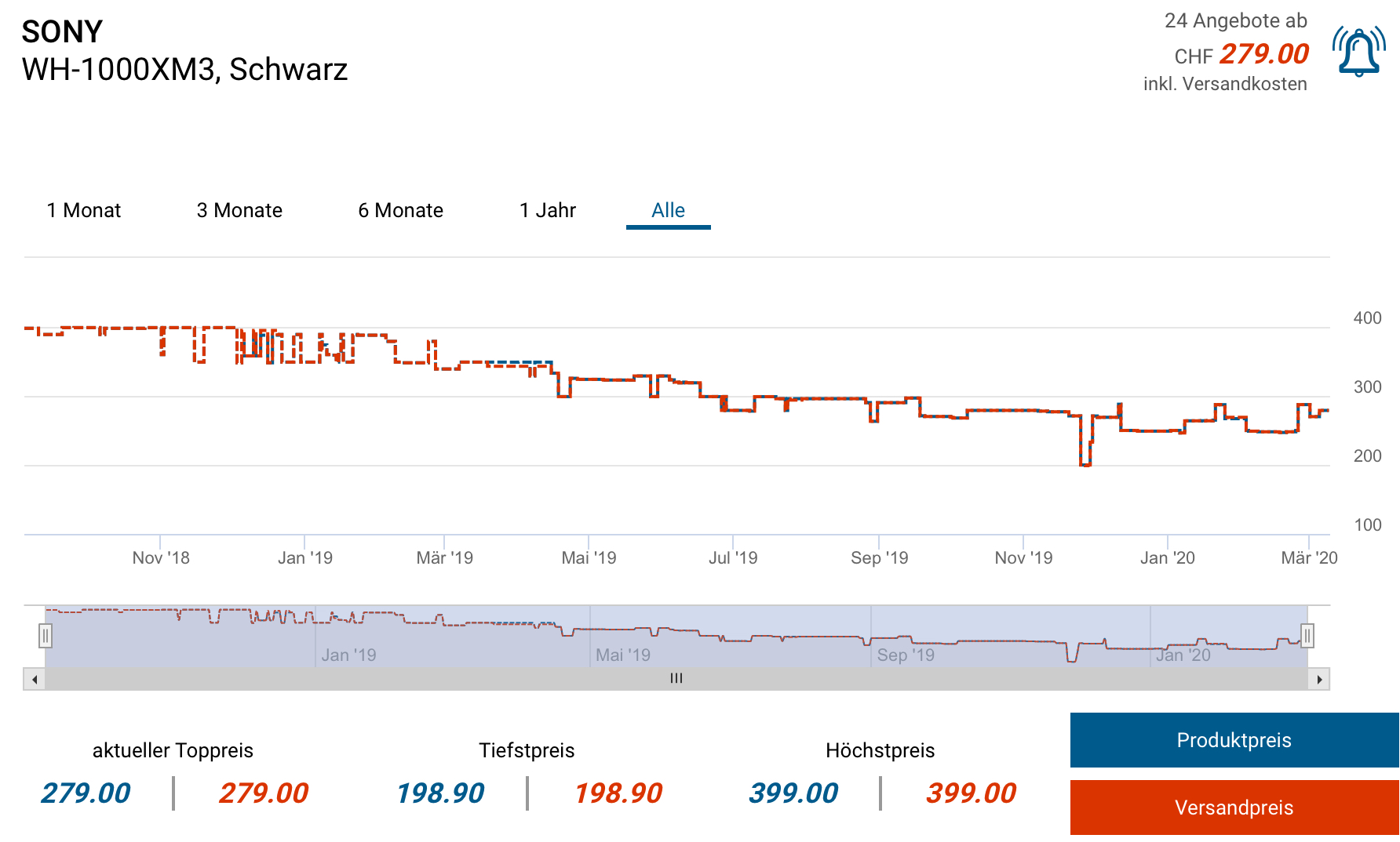 Bei amazon.fr gibt es aktuell den SONY WH-1000XM3 in Schwarz für 226.61 EUR.