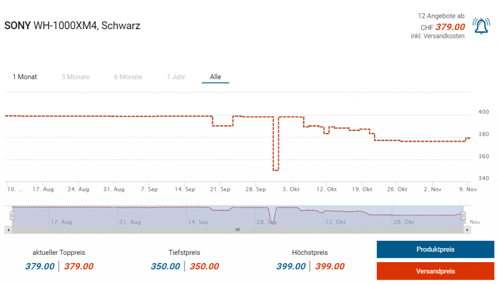 Bei Amazon Italien gibts die beliebten Nachfolger-Kopfhörer der XM3 in Aktion. So zahlt ihr für die Sony WH-1000XM4 ANC-Kopfhörer inkl. Versand in die Schweiz noch knapp 309 Franken, in der Schweiz starten die Preise währenddessen bei schwindelerregenden 379 Franken.