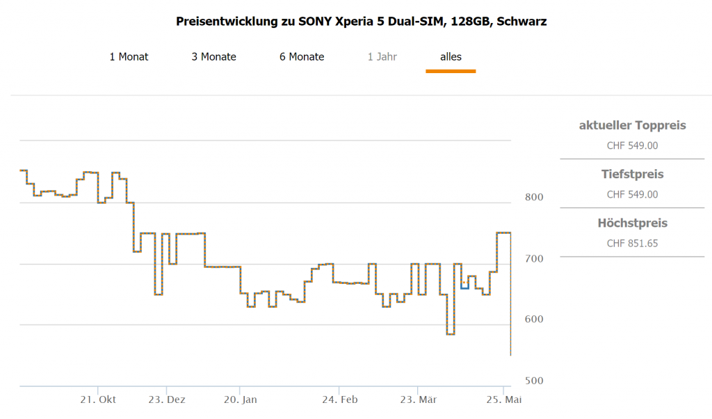 Zweitbester Preis beträgt im Moment CHF 749.90 Bestpreis war bei CHF 584.10