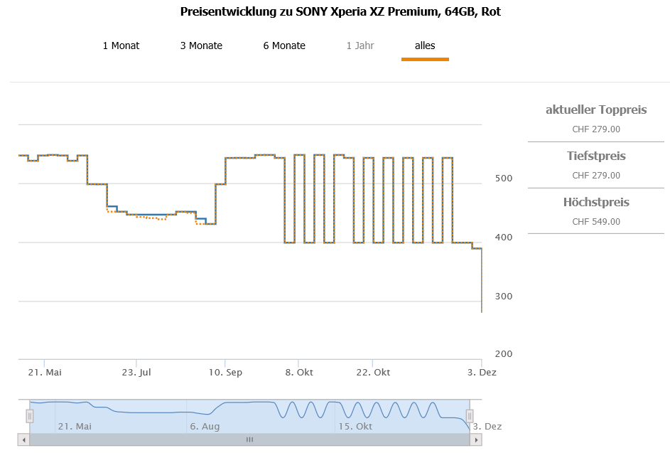 Gemäss toppreise war der bestprice über alle Farben bislang bei 383.- CHF, was aktuell auch der zweitbeste Preis ist.