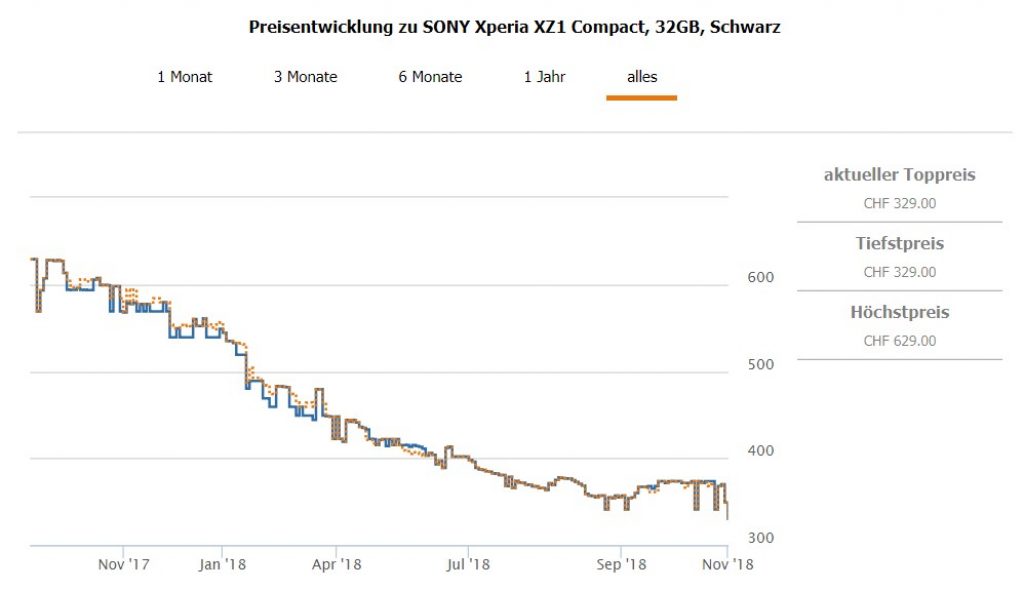 Bei microspot gibt’s gerade das SONY Xperia XZ1 Compact mit 32GB internem Speicher in schwarz für CHF 309.- wenn man den Gutscheincode HFWMSP20 beim Checkout eingibt. Zweitbester Preis in der Schweiz liegt bei CHF 364.- Unter CHF 341.- erhielt man das Smartphone in der Schweiz bislang noch nie.