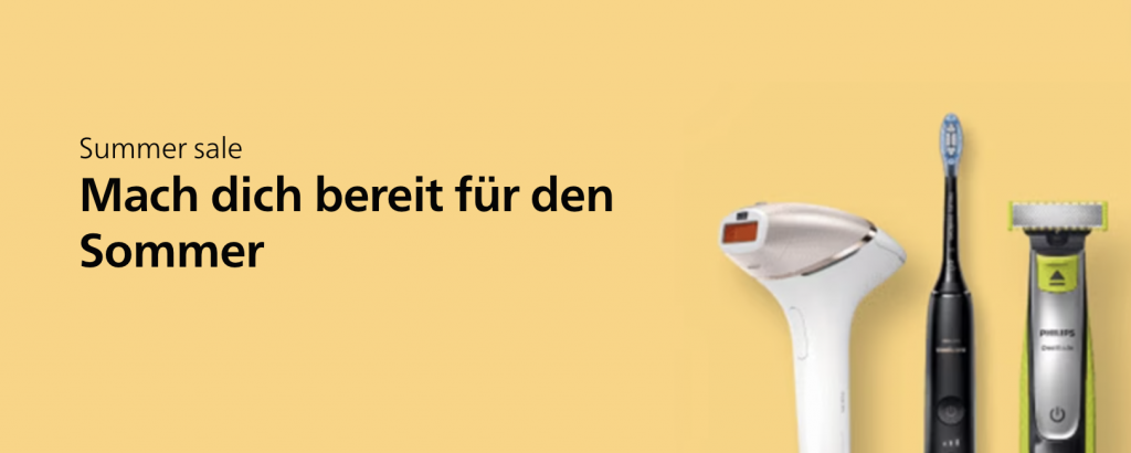 Bis zum 02.07. profitierst du von bis zu 50% auf Körperflegeprodukte. Hole dir jetzt den neusten Rasierer, eine neue Zahnbürste oder ein IPL-Gerät zu attraktiven Preisen und starte frisch in den Sommer!