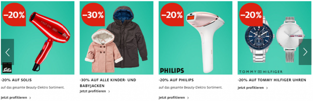 Heute sind bei den Manor Special Days folgende Kategorien im Angebot: