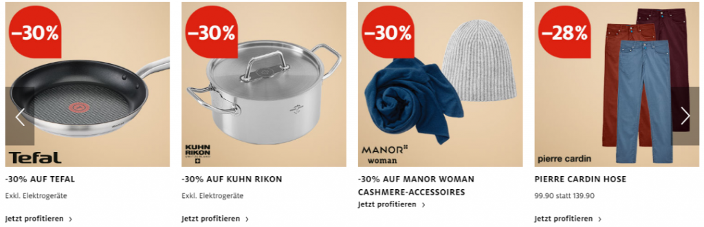 Heute sind folgende Kategorien stark reduziert bei Manor: