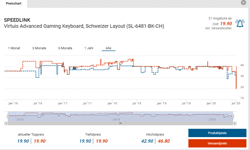 Bei Foletti Computer SuperStore gibt es die Speedlink Virtuis Advanced Gaming-Tastatur für den neuen Bestpreis von CHF 19.90. Der vorherige Bestpreis war CHF 32.80. Der zweitbeste Preis beträgt CHF 39.90.