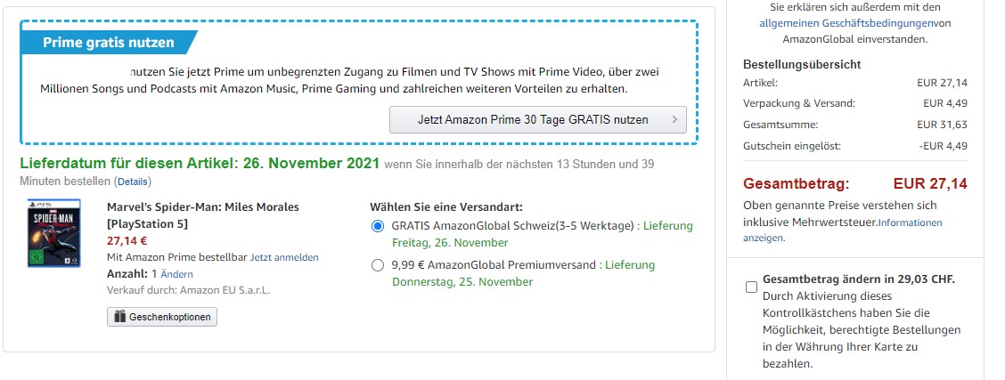 Die PS5-Version zu „Spider-Man: Miles Morales“ gibt es momentan bei Amazon.de zum Tiefstpreis. Momentan bester VGP ist für 34.90 CHF bei WOG.