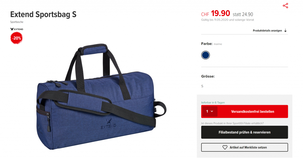 - 20% auf alle Sporttaschen