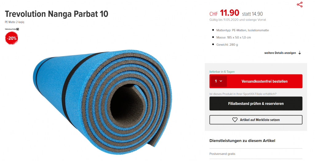 - 20% auf alle Trekkingmatten