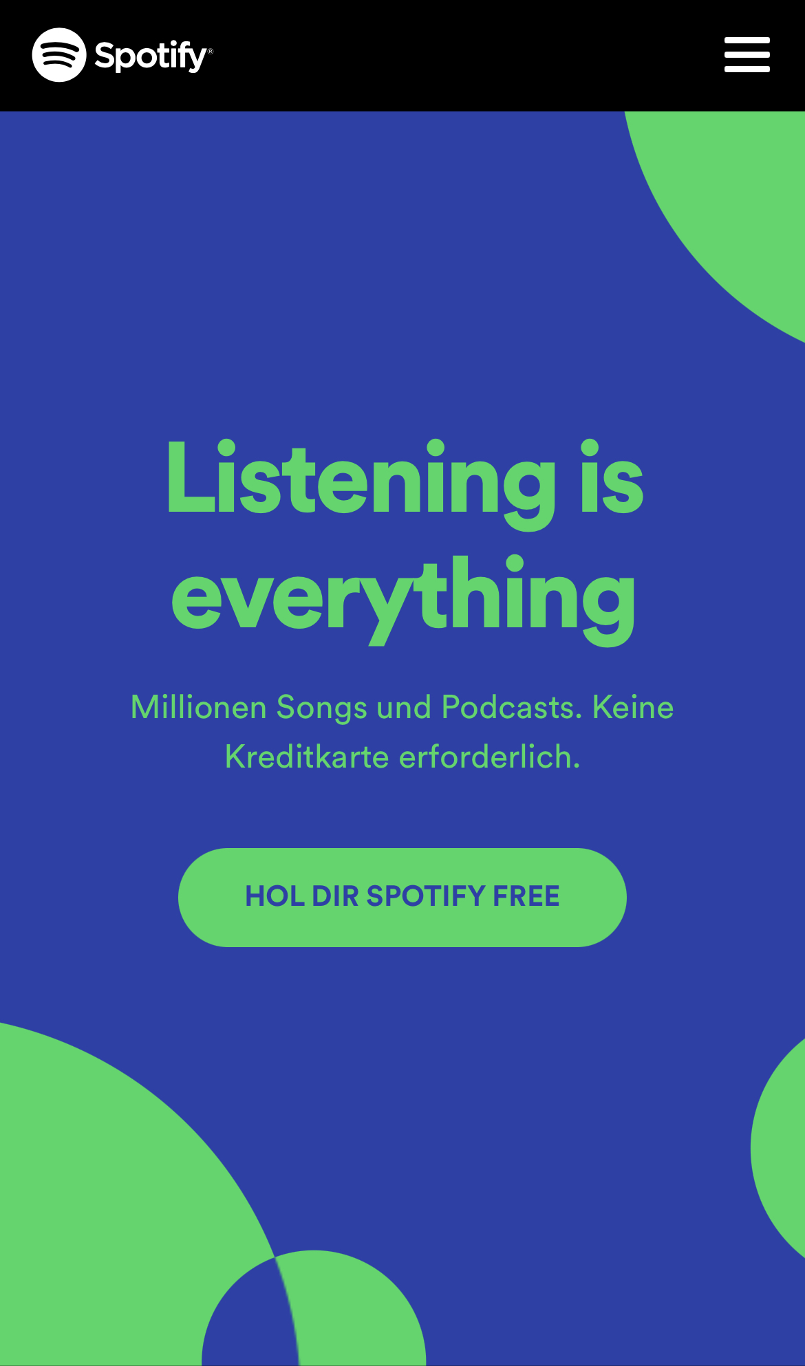 Schritt 1: Geh auf spotify.com/ch und klick oben rechts auf die drei Streifen