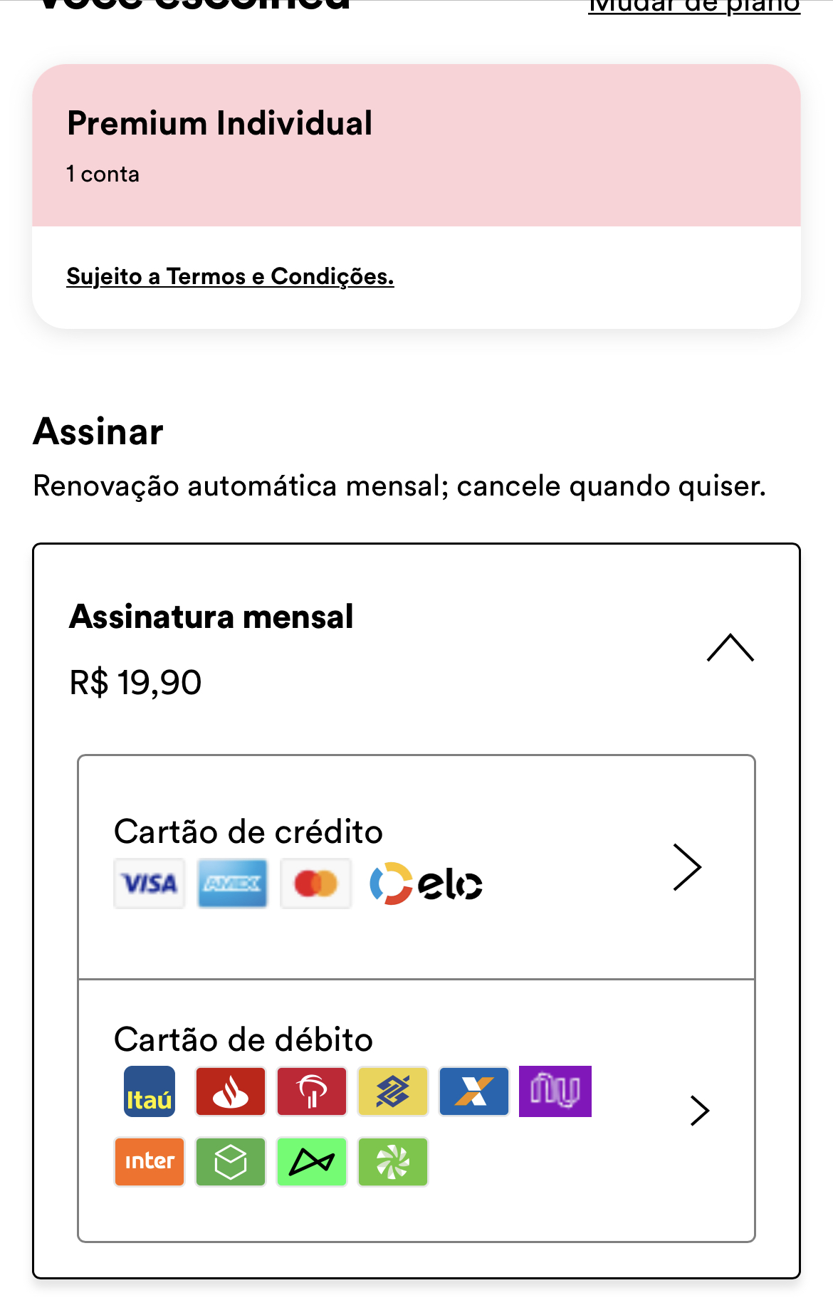 Schritt 15: Unter „Assinar“ klickst du auf den Pfeil nach unten neben „Assinatura mensal“.