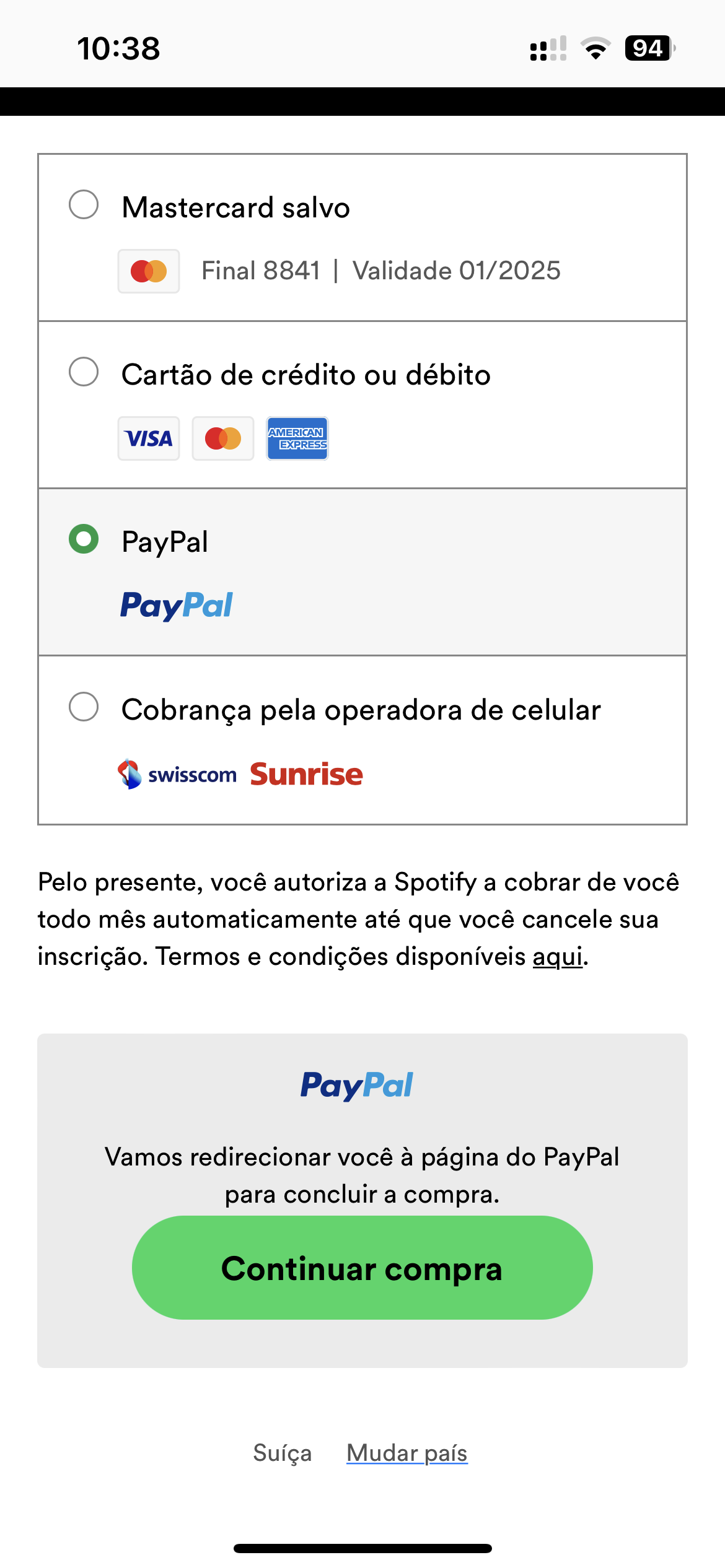-> Du wirst zu PayPal weitergeleitet. Dir wird nun eine Zahlung von CHF 0.01 belastet. Danach wirst wieder zu Spotify geleitet.