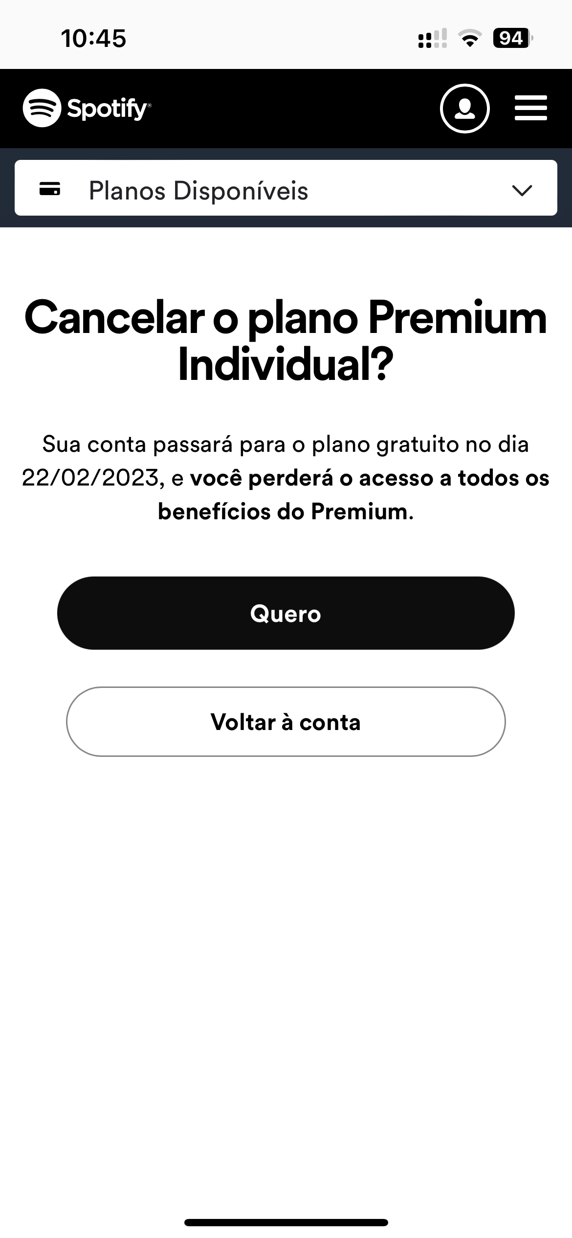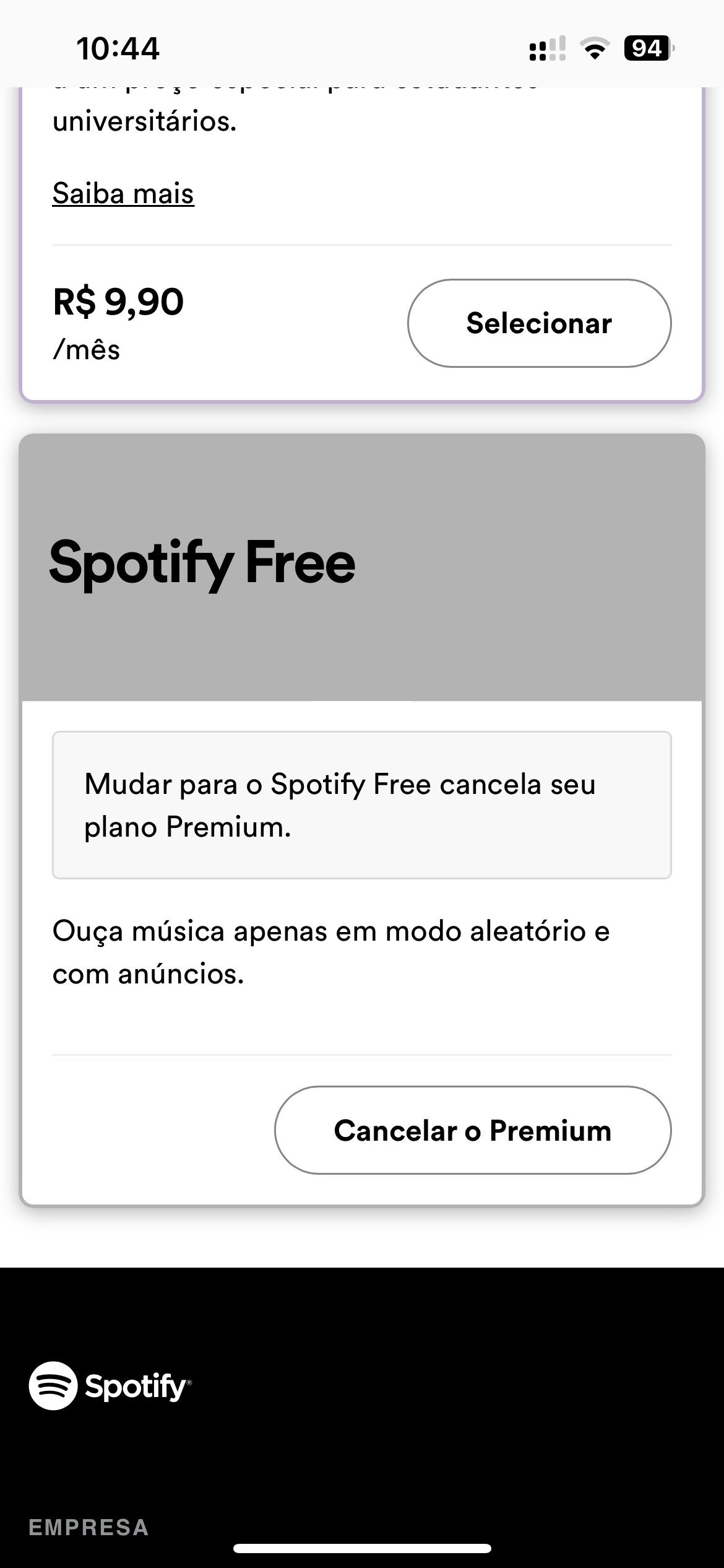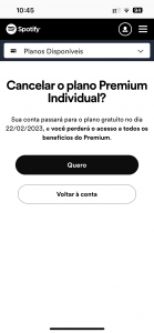 Schritt 22: Ganz unten bei „Spotify Free“ drückst du auf den Button „Cancelar o Premium“.