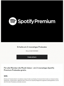 Wenn ihr euch bei H&M online ein kostenloses Konto einrichtet, bekommt ihr einen Code für 3 Monate Spotify Premium kostenlos. Gültig bis 04.10.2024 und nur für neue Spotify Kunden, welche noch kein aktives Abo haben.