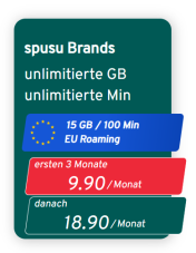 Kostenkontrolle: spusu-App oder auf Website (Mein spusu) können Kostenlimiten für Anrufe, SMS und Daten festgelegt werden, die das inkludierte Kontingent überschreiten und extra kosten würden. Gebe einfach den monatlichen Höchstbetrag ein, den du bereit bist, für zusätzliche Dienste auszugeben. Dieser Betrag wird dann nicht überschritten und du bist vor zusätzlichen Kosten geschützt.