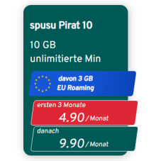 Ich habe den Support gefragt wegen Roaming, hier die Antwort: Mit dem Abo spusu 10 haben Sie 10GB in der Schweiz zur Verfügung. Davon sind 3GB fürs Ausland gedacht. Sollten Sie in der Schweiz die 10GB bereits aufgebraucht haben, hätten Sie für den Monat leider keine GB mehr für Roaming zur Verfügung.